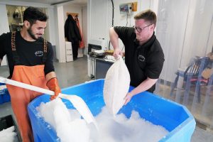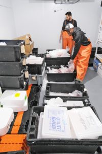 It can be witnessed in the retail section where all of the seafood is iced. “Every day, we take a ton of cubed ice, ground it down into little diamonds and pack it here,” he said, noting the sparkling effect it gives to the display.