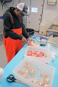 A typical day starts with its first truck departing to Boston’s Araho Transfer Station, a third-party handler of fresh and frozen seafood, at 5 AM. “We bring the fish back here and the fish gets cut,” he said. “We’re pretty much buying a day ahead, meaning that we’re bringing in whole fish to cut for the next morning.”